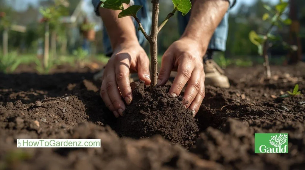 Encouraging root establishment by mixing compost or well-aged soil into the planting hole to provide nutrients and improve soil structure.