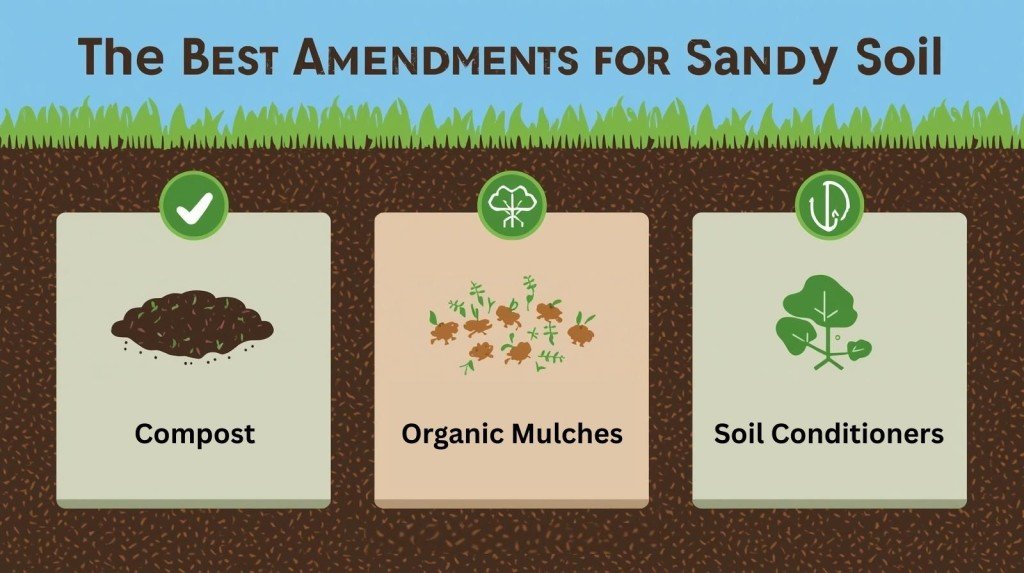 Compost and aged manure enrich sandy soil with organic matter, helping it hold moisture and nutrients more effectively.